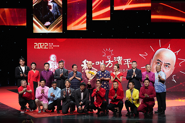 演出圓滿結(jié)束,觀眾們意猶未盡,精彩紛呈的相聲新作品給廣大觀眾帶去了歡樂和笑聲,陪伴大家度過了一個難忘的中秋節(jié)。《一路歡歌,與您同行》相聲新作品晚會,用緊貼時代的熱點(diǎn)題材,幽默詼諧的相聲語言,技藝精湛的高水平演出,在迎接黨的二十大召開之際獻(xiàn)上一份歡聲笑語的相聲賀禮,體現(xiàn)了國家級藝術(shù)院團(tuán)的責(zé)任與擔(dān)當(dāng)。