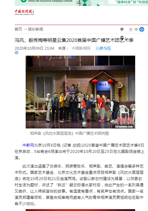 在抗擊疫情取得重大勝利的時刻,又恰逢重陽節(jié),賦予了本屆藝術(shù)季收官演出不同的含義,作為國家藝術(shù)院團(tuán),中國廣播藝術(shù)團(tuán)深入貫徹習(xí)總書記“用心用情用功抒寫偉大時代”的講話要求,不斷推出謳歌黨、謳歌祖國、謳歌人民、謳歌英雄的精品力作。本場晚會由中國廣播藝術(shù)團(tuán)五大分團(tuán)聯(lián)袂出演,馮鞏、殷秀梅、姜克美、屠洪剛、魏金棟、吳瓊、趙保樂、方清平、薛皓垠、楊子一、賈旭明、曹隨風(fēng)、金霏、陳曦、龔潔、侯林林等著名藝術(shù)家及知名演員悉數(shù)登場,傾情奉獻(xiàn)給觀眾一臺精彩紛呈的多元化文藝晚會。