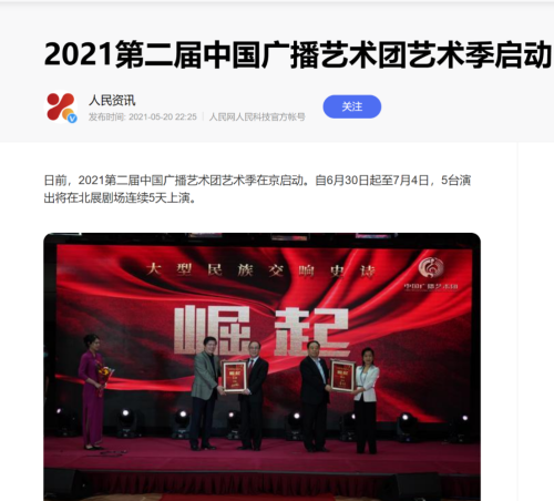 由中國廣播藝術(shù)團(tuán)和中國國家博物館聯(lián)合出品的大型民族交響史詩《崛起》以磅礴的民族交響樂、動情的演唱吟誦,回顧中國共產(chǎn)黨百年奮斗的光輝歷程,為中國共產(chǎn)黨建黨百年獻(xiàn)禮。